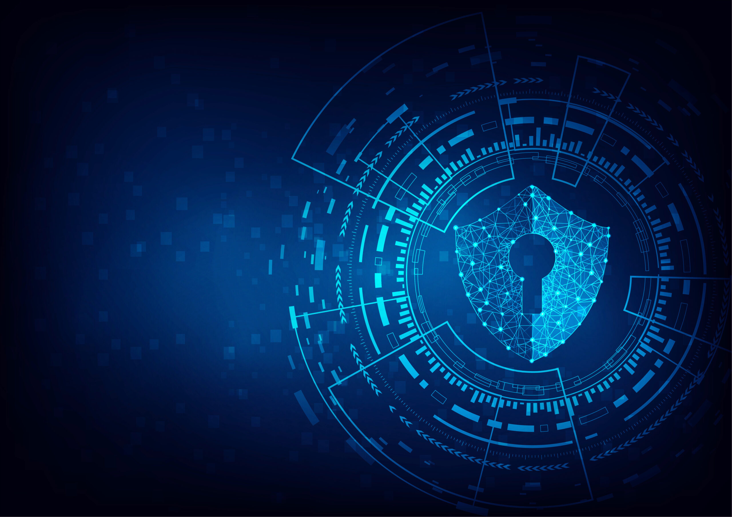 Internet technology cyber security concept with diamond shield Keyhole icon on Blue abstract background. Internet technology cyber security concept with diamond shield Keyhole icon on Blue abstract background.